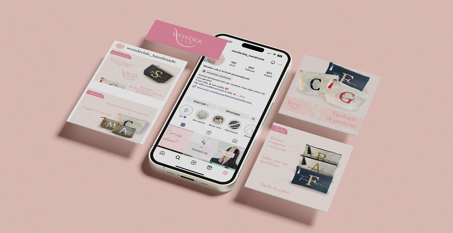 Ho studiato e scelto colori tenui, tenendo conto delle idee descritte nel brief per rispondere alla richiesta di avere come base il colore rosa cipria.